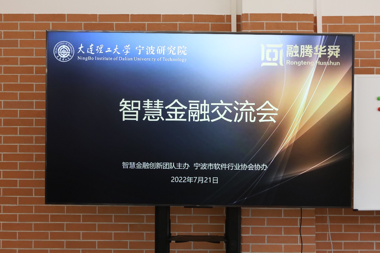 2022年7月21日下午,由大连理工大学宁波研究院(智慧金融创新团队)主办,宁波市软件行业协会协办,浙江融腾华舜信息技术有限公司(以下简称融腾华舜)承办的“智慧金融交流会”在大连理工大学宁波研究院圆满举行。