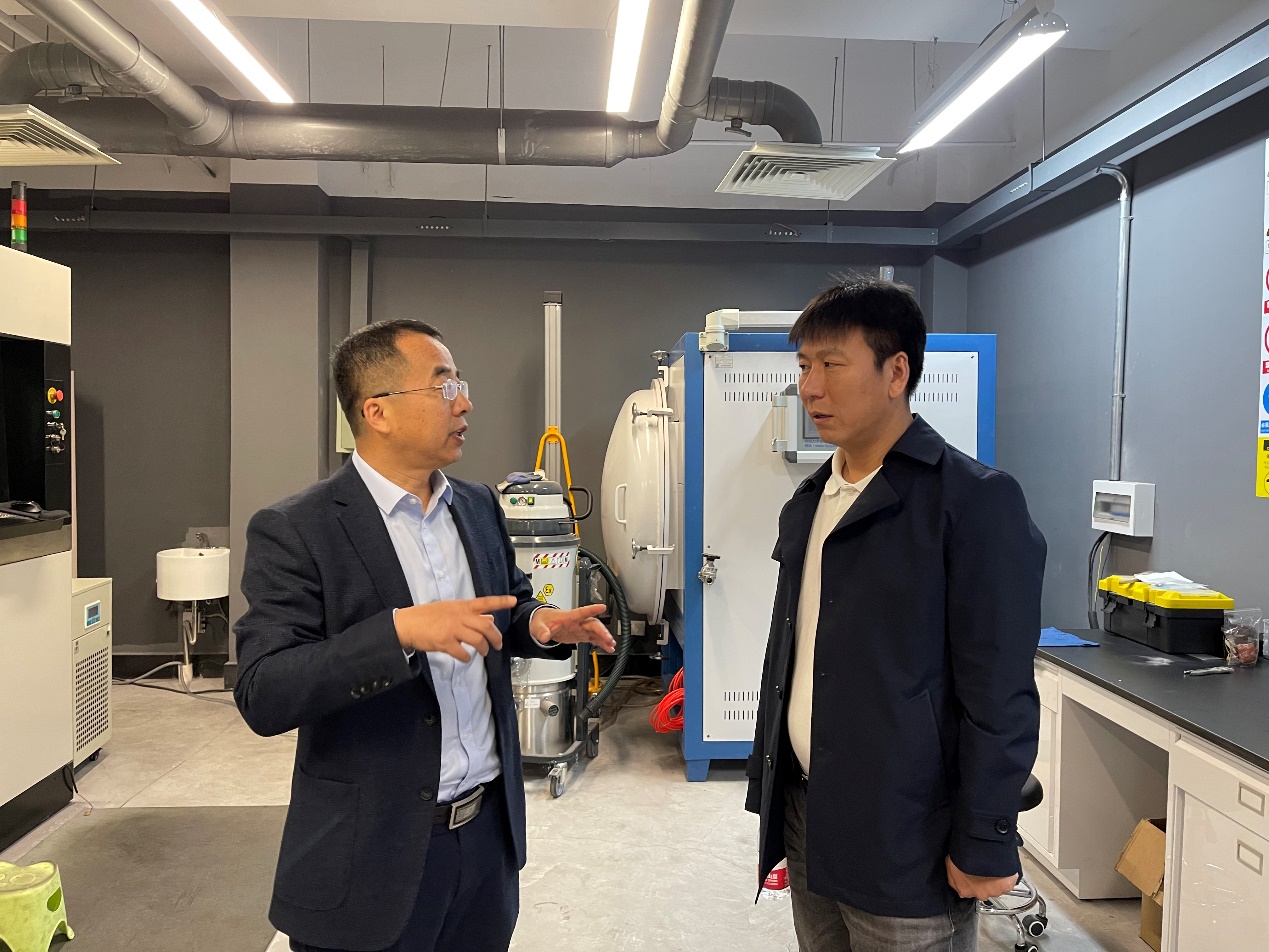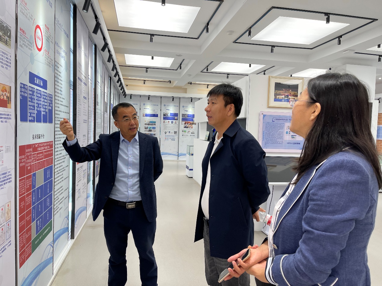 杨处长一行在郝海院长的陪同下观看了研究院宣传片,先后参观了研究院展厅、高端装备与智能制造技术创新中心、重大基础设施建设技术创新中心、新材料与成型技术创新中心、绿色精细化工与生物医药技术创新中心,郝海院长对研究院及各创新团队基本情况做了介绍。