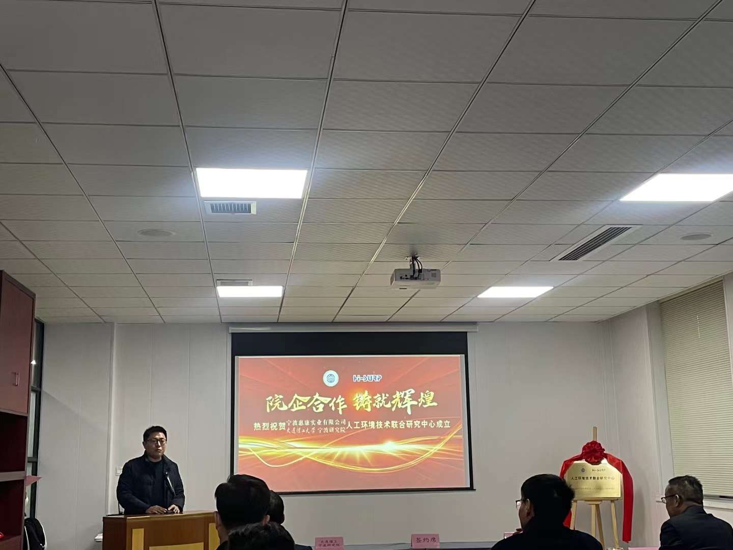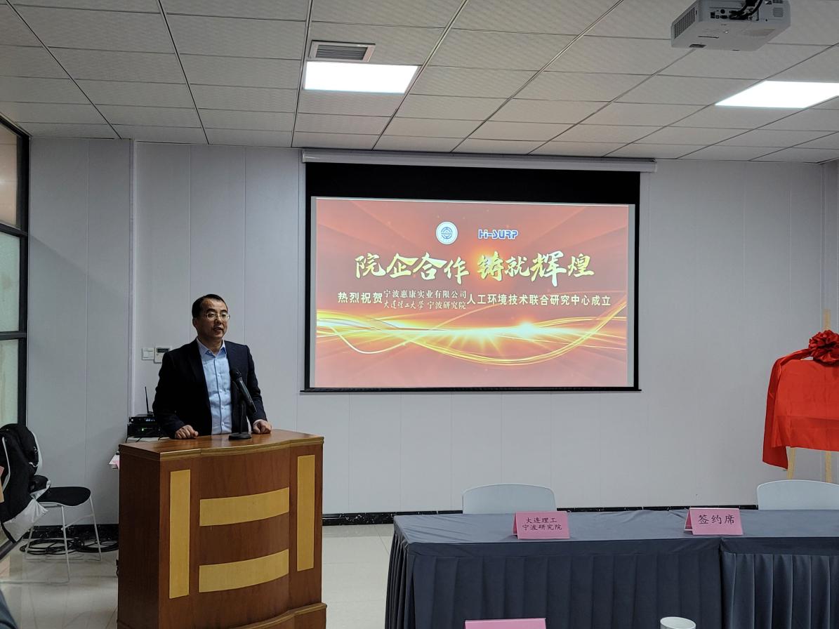 我院张博副院长、惠康实业汪志强副总代表双方就联合研究中心建设发言。双方一致认为大连理工大学宁波研究院与宁波惠康实业有限公司将共同依托人工环境技术联合研究中心等载体,开展深度产学研融合协同创新合作:一是科技成果转化及产业化;二是瞄准行业前沿技术及行业发展动态,突破企业技术瓶颈或行业难点;三是对公司研发人员开展专业化培训指导,提升公司研发人员的知识水平和科研水平;四是合作申报和实施各级各类重大攻关项目,联合发表论文、申请专利和新产品研发,从而实现“优势互补、资源共享、产研融合、协同创新、发展共赢”的目标。