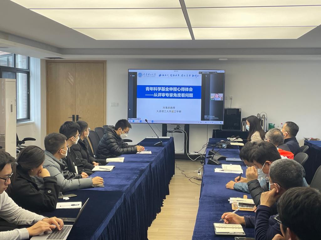 大连理工大学刘海星教授 (国家优秀青年科学基金获得者)结合个人科研经历和基金申请经历做了题为“青年科学基金申报心得体会——从评审专家角度看问题”的专题指导报告,从基金选题、立项依据、研究内容、研究方法、书面表达等方面对国家自然科学基金项目申请书撰写经验进行了精彩的分享,强调要从基金申报过程中不断提升凝练科学问题的能力和基金申请书撰写水平,对于我院科研人员参与基金申报具有重要的指导性意义。