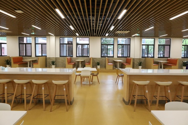 “要保证全院师生吃得安全,吃得放心,我们要建立研究院自己的食堂”。2021年,随着研究院的发展壮大,入院师生及入驻企业员工陆续增多,全院就餐的问题广受关注,院领导下决心要建立研究院自己的食堂。明确目标后,院内多次在院务会讨论食堂成立推进工作,从食堂改造方案、就餐对象、就餐方式、就餐动线、经营管理模式等方面着手,初步形成了员工食堂筹备方案。2022年10月,经过前期反复论证、修改,研究院通过公开招标方式,向社会发布员工食堂托管经营服务项目。经过严格的资格审查、公平合理的开标、评标与定标等程序,最终确定食堂运营公司。为抓紧落实食堂装修改造工程施工安排和管理,院领导亲自跟进装修进程,并就装修改造过程中出现的问题及时协调解决,终于将原本年久失修的食堂改造成如今温馨整洁、宽敞明亮、厨具干净卫生、各类设施齐全,可同时容纳200余人就餐的餐厅。