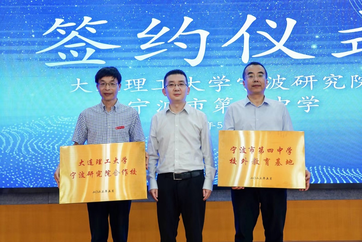 5月16日下午,宁波市第四中学与我院合作框架协议的签约仪式在我院报告厅隆重举行,80余名宁波四中科创班学生来我院开展科创研学活动。宁波市科学技术协会科普部江定部长、江北区科学技术协会周德华主席、大连理工大学宁波研究院郝海院长、纪松副院长、宁波市第四中学于建春书记等领导及两校教职工代表共同参与了本次活动。