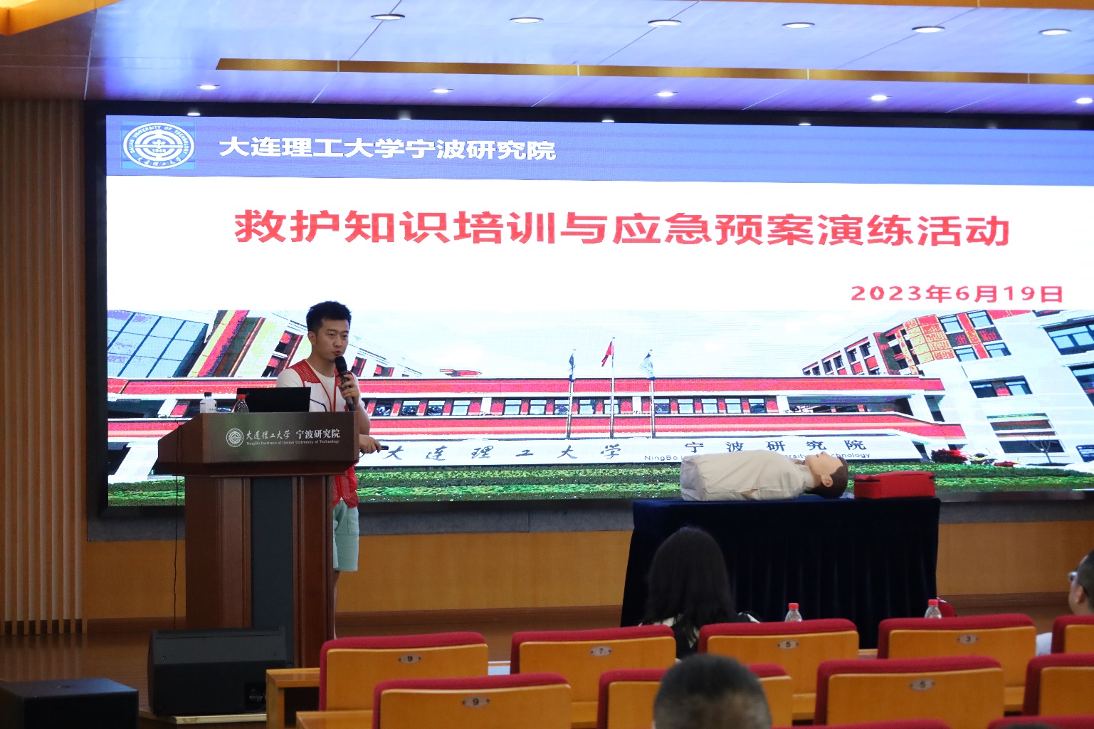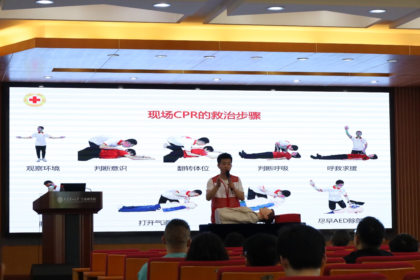 为深入开展第22个全国“安全生产月”活动,树牢“人人讲安全,个个会应急”的安全意识,普及救护知识与消防知识,进一步加强研究院全体师生员工的应急处置能力,6月19日上午,研究院安委会邀请江北区红十字会、江北区消防中队、江北区文教街道组织开展2023年救护知识培训与应急预案演练活动。研究院专职员工、驻院研究生参加本次活动。