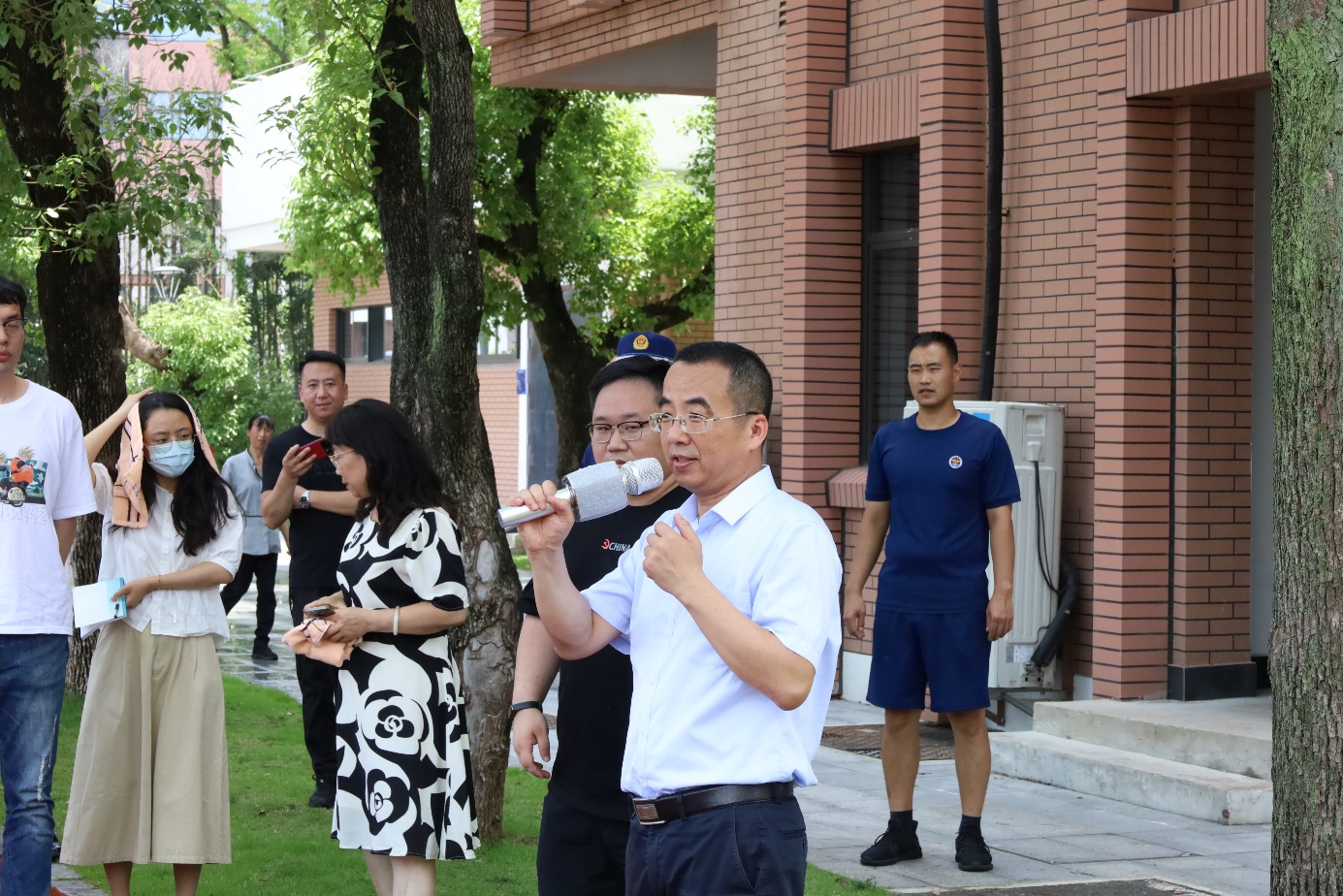 之后的消防应急预案演练中,随着警报声拉响,全体人员按照疏散要求有序撤离。研究院迅速启动应急预案,院区消防队及时赶赴现场并成功扑救火灾。随后,江北区消防中队指导员现场讲解灭火器的使用方法和人员疏散救助等知识,演示火灾扑灭方法并组织人员轮流实操,进一步加强了全体师生消防意识,提升了应急处置能力。