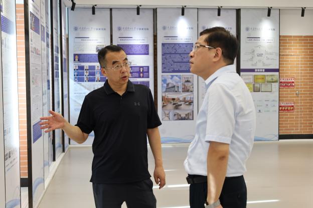 李书记一行首先观看了我院宣传片,对研究院的发展历程和概况进行了解并参观了研究院展厅,听取了郝海院长对我院发展历程、创新团队科研方向、科技成果转化等方面的介绍。随后参观了我院高端装备与智能制造技术、绿色精细化工与生物医药技术等创新中心及部分实验室。