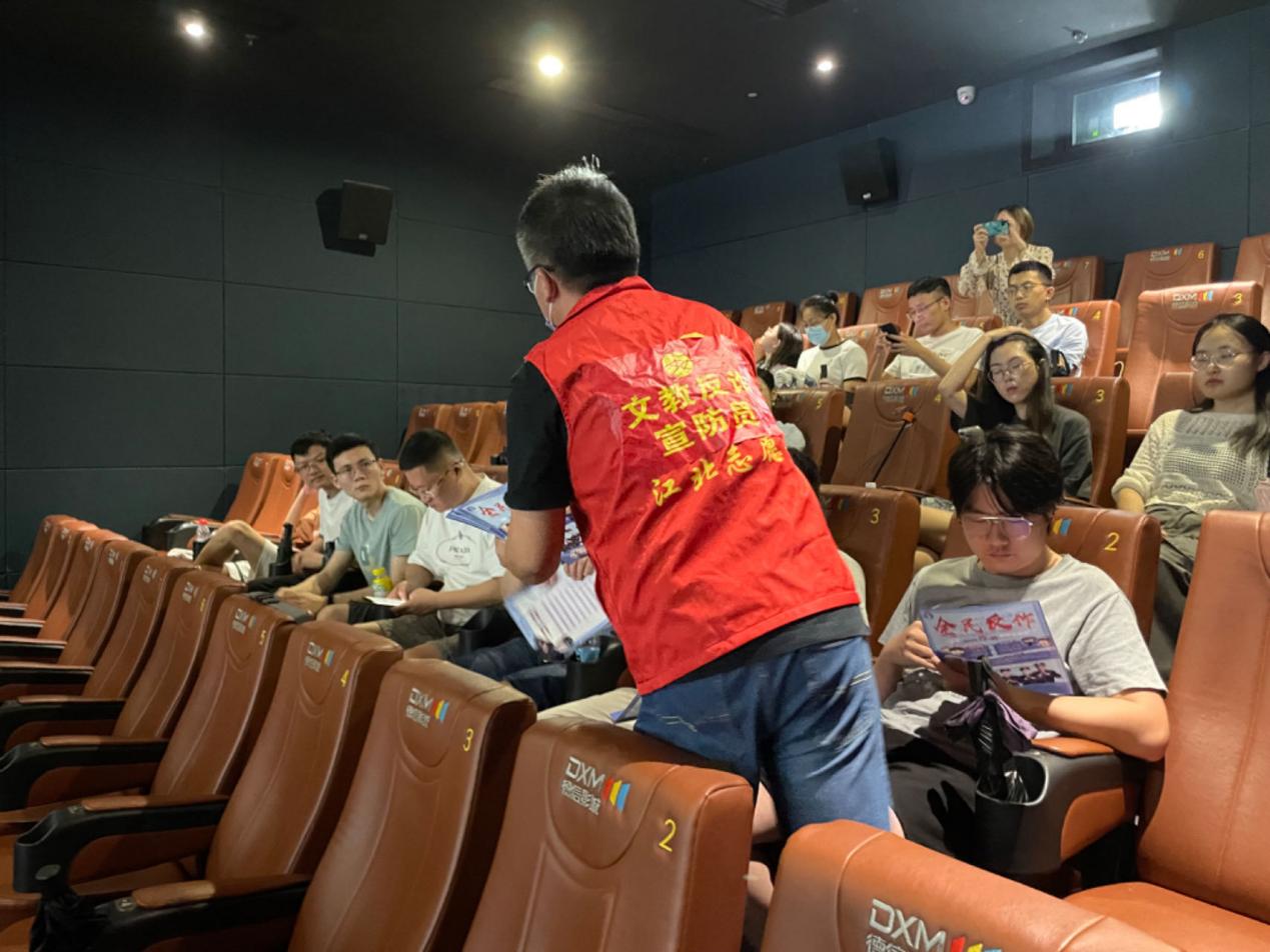 观影前,平安法治办周科在大银幕前讲述了身边的真实案例,揭露了电信诈骗无处不在,为我院青年教师和研究生们敲响警钟,同时也提醒大家安装“国家反诈中心”APP以及有疑问及时拨打96110,告诫我们提高警惕,增强防范意识。