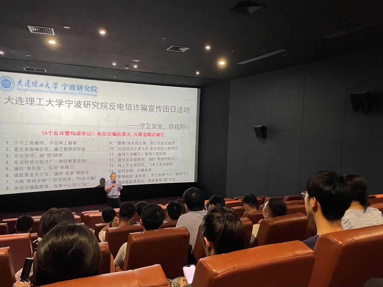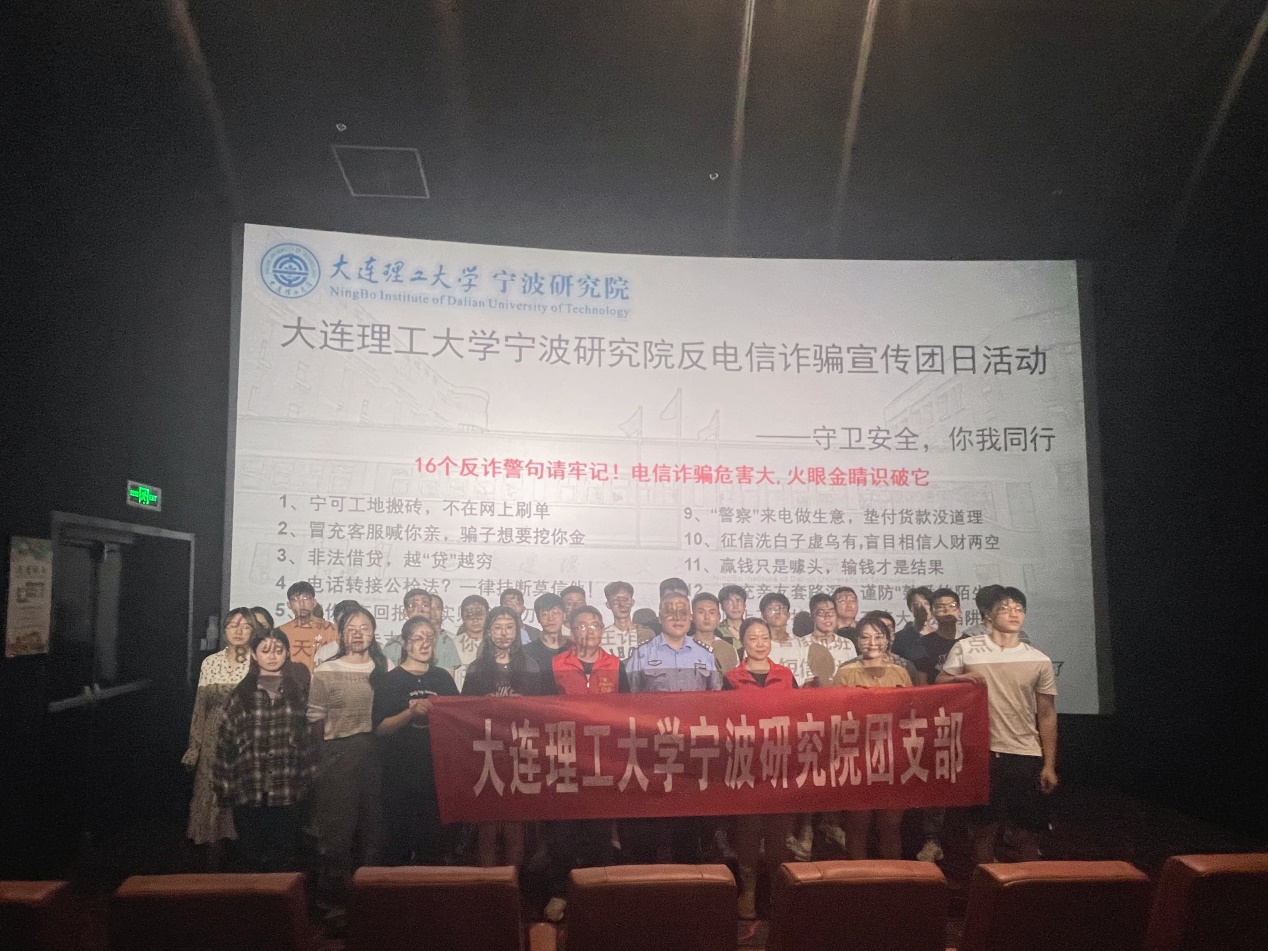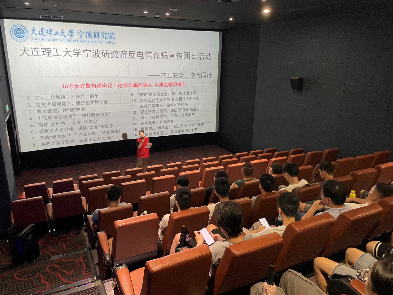 近年来国内电信网络诈骗呈现多发、频发的趋势,已成为当前严重影响公众安全的突出问题。为进一步提升青年教师以及在校学生群体知诈、识诈、防诈、反诈意识,大连理工大学宁波研究院团支部在8月22日下午组织了一场关于反诈宣传题材的观影活动,同时也邀请到了江北区文教街道平安法治办和派出所民警现场为大家讲解反诈知识,与大家一起喊响反诈宣传口号。