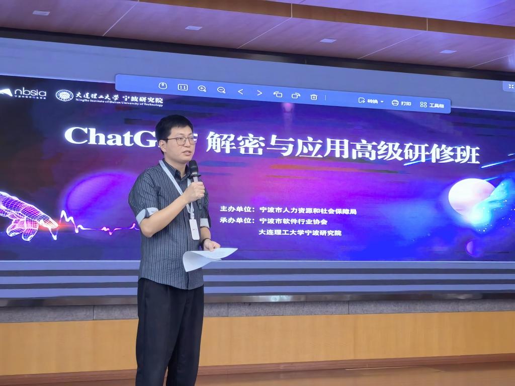 9月20日-22日,由宁波市人力资源和社会保障局主办,宁波市软件行业协会、大连理工大学宁波研究院承办的“ChatGPT解密与应用高级研修班”在我院成功举办。来自人工智能相关专业领域的企事业管理或技术人员80余人参加本次培训。