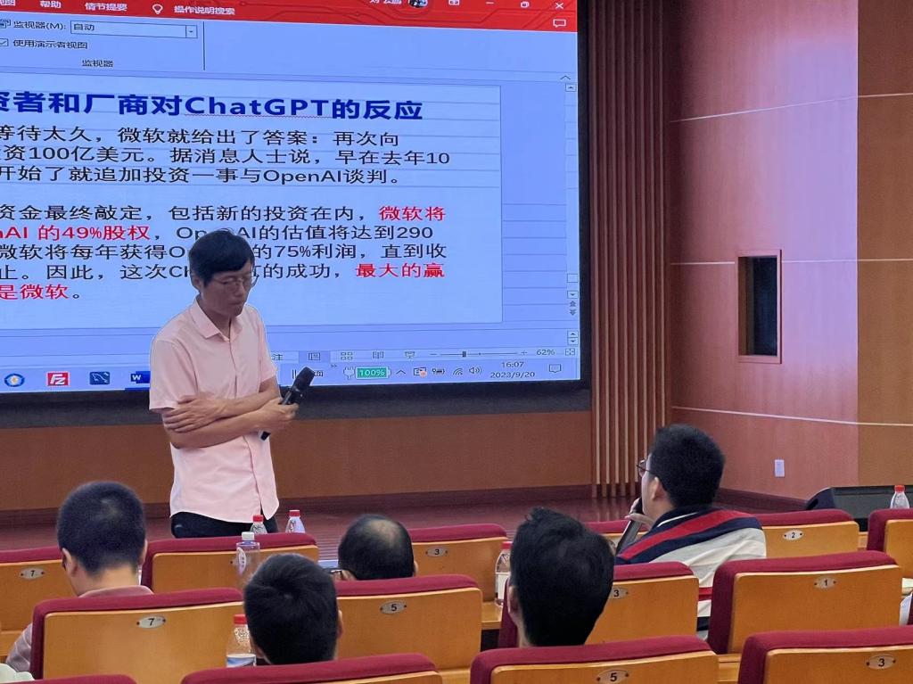 本次高研班以“ChatGPT解密与应用”为主题,聚焦人工智能领域前沿动态,了解和探索新技术和新趋势,群策群力共同助推我市经济发展提质增效。为期三天的培训主要采用理论授课、研讨交流、参观考察结合的形式,邀请到了浙江大学计算机专业工学博士、教授刘云鹏,浙大宁波理工学院科研处副处长、数据工程与计算科学研究所所长舒振宇,中国智慧产业研究院副秘书长、宁波工程学院电子与信息工程学院教授安鹏,宁波大学信息科学与工程学院副教授彭成斌等专家做现场授课。