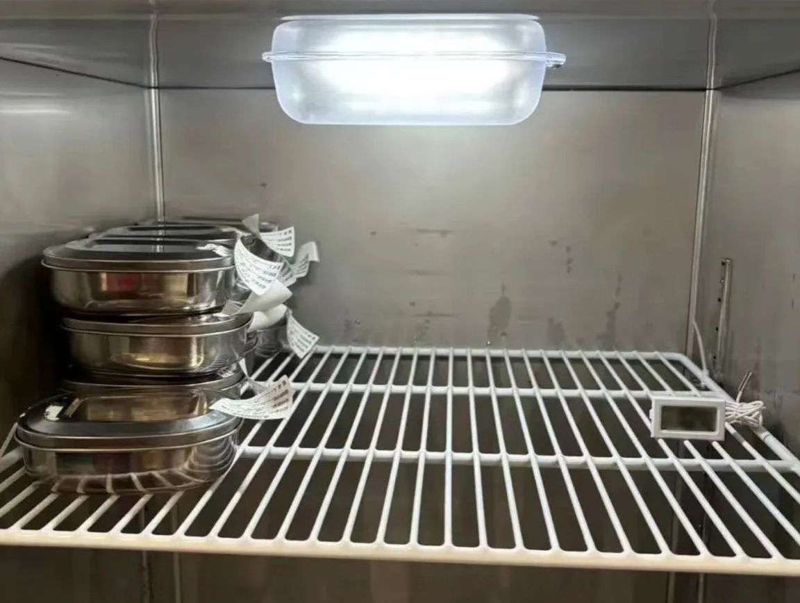5. 留样冰箱内有温度显示、食品有标签信息。
