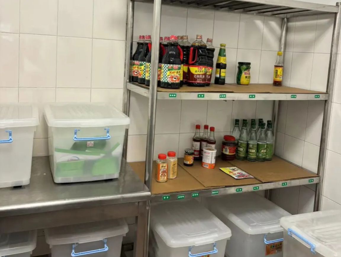 4. 厨房环境干净整洁,冰箱食材摆放整齐规范,仓库食材有序分类。