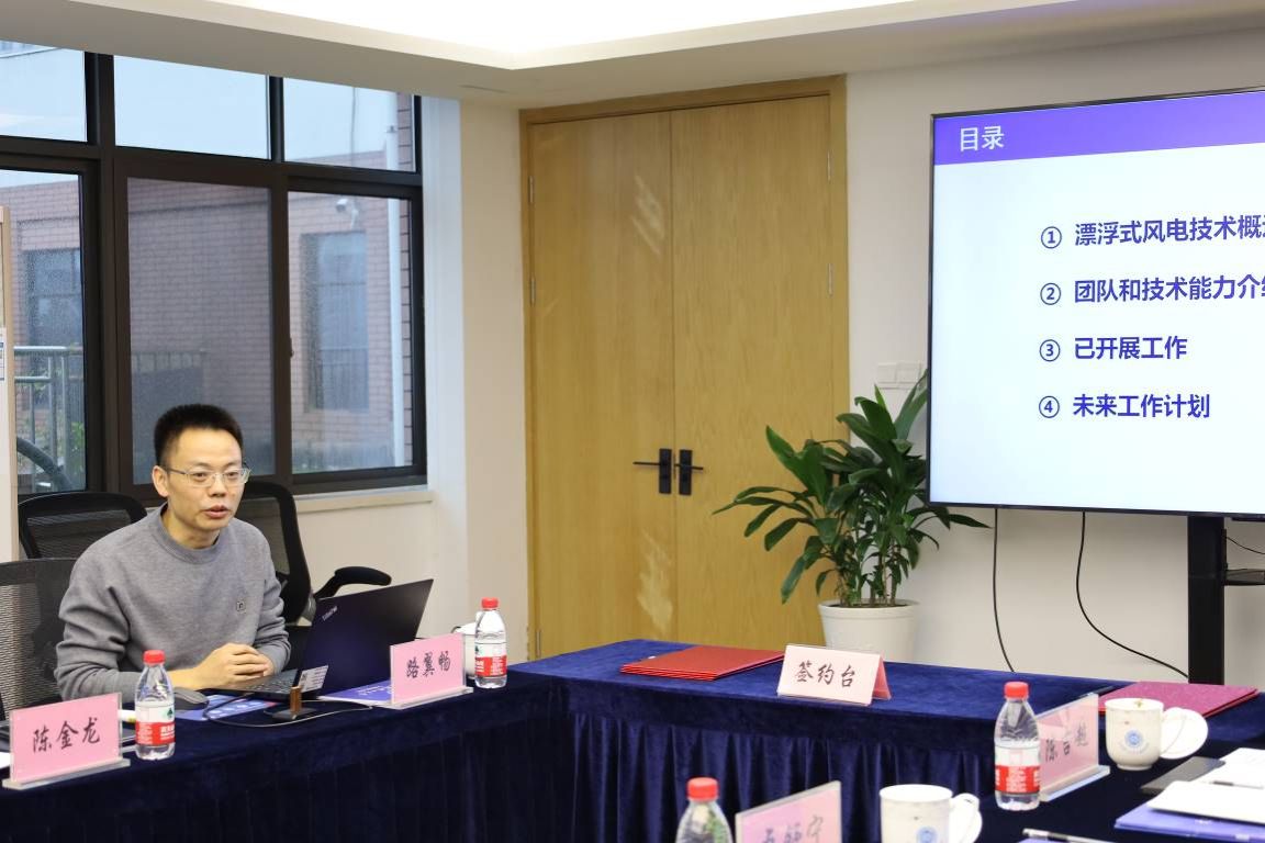 签约仪式后,海洋装备团队科研骨干陈金龙就深海风电漂浮式基础平台关键技术研究项目推进情况做了汇报,介绍了海上能源开发的三个阶段,开发海上平台的难题和挑战。并汇报了漂浮式风电平台核心设计理念、设计方案、设计准则,介绍了下一步的工作计划。林董听取汇报后对当前工作取得的成果给予了高度评价,并指出,漂浮式风电的发展是未来新能源领域发展的趋势,实现漂浮式风电的商业化,低成本化是目前漂浮式风电降本增效的必由之路,希望双方借助联合实验室的模式,共同探索解决漂浮式风电中存在的关键科学问题,研发出具有中车特色和行业核心竞争力的漂浮式风电产品。