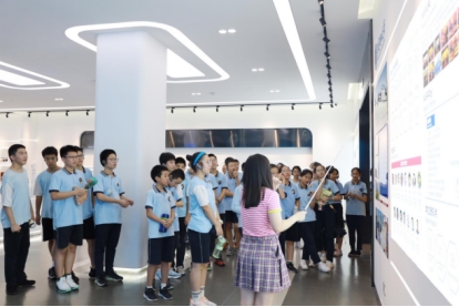 活动开始,育才实验学校的学子们跟随着研究院科技与合作部路翼畅部长的讲解参观了研究院展厅及部分成果展示,了解前沿科技以及我院创新团队的工作内容,对新质生产力的含义有了更直观的认识。