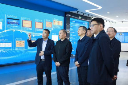 朱主任与费主任一行在郝院长的陪同下观看了研究院宣传片,参观了展厅,并通过展厅中数字孪生系统观看了庄桥园区中公共检测平台的先进仪器设备。郝院长介绍到,研究院聚焦宁波万千亿级产业集群,由院士及知名专家担任创新中心首席科学家,依托大连理工大学全国重点实验室与优势学科方向、宁波市支柱产业等综合优势形成重大创新平台,建有五大创新中心、国家/省/市级科研创新平台和博士后工作站。五大创新中心下设22个团队,研究领域契合宁波市发展方向,与宁波市企业深入对接交流,通过联合共建研发中心、共同承担研发课题等形式,开展产学研深度合作。朱主任仔细听取郝院长介绍,对研究院建设成果表示赞赏。
