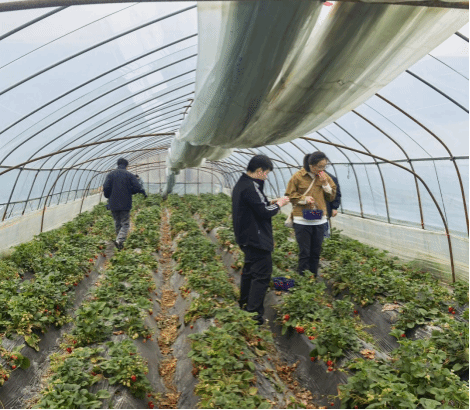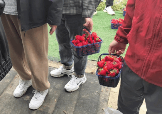一踏入草莓大棚,清甜的果香扑面而来。师生手提采摘篮,穿梭于草莓大棚中,一边挑选成熟的草莓,一边交流采摘技巧,欢声笑语不断。