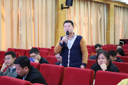 讲座后的互动环节,大家踊跃提问,就线上视觉检测系统、曲面检测、AI算法检测等问题与丛明教授和机器人团队郭策博士进行了深入交流。