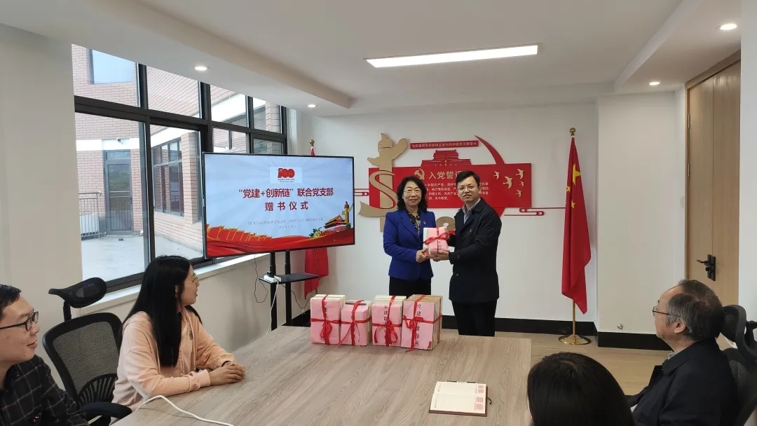 研究院党支部书记、副院长惠晓丽表示,自研究院落户江北以来,江北区科技局的精准服务,让我们真切感受到了务实和高效。此次作为受赠方,更是感受到了区里满满的关怀,以及对研究院活动支持的热忱。我们更要带领党支部同志认真学习党史,以史为镜、以史为鉴、以史明志,扎扎实实抓好科技创新、人才培养、科技服务、产业培育等工作,以期为江北、为宁波的发展增砖添瓦。