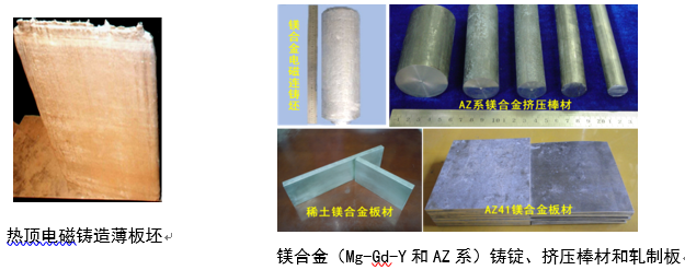 Hot top electromagnetic casting thin slab Magnesium alloy ingots, extruded bars and rolled sheets