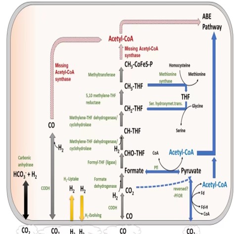 选育了高效利用 CO2的食气梭菌,利用厌氧微生物在非光合作用下固定CO2,通过代谢工程改造提高生产菌株对CO2的转化效率,开发了微生物电合成以及CO2循环利用耦合集成技术,实现多种醇类生物燃料及生物基化学品的高效生物催化转化。